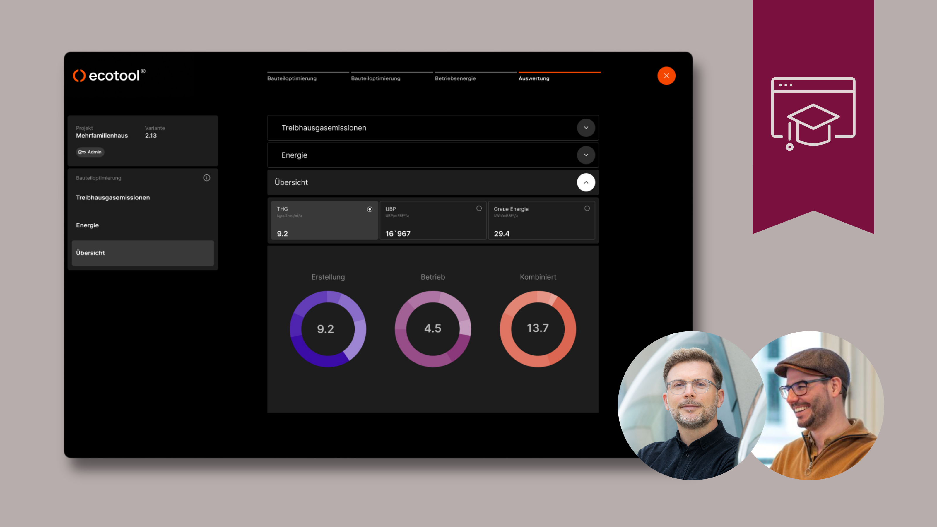 Lerne mehr zu EcoTool, zum einfachen Umgang mit Ökobilanzierung in frühen Phasen sowie zur konkreten Anwendung in deinem Bauprojekt.